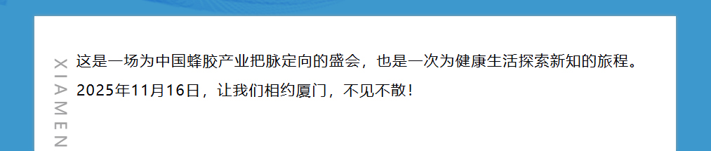 思健生物科技誠邀您共赴廈門(mén)出席第九屆中國(廈門(mén))蜂膠高峰論壇:與蜂業(yè)權威面對面,洞見(jiàn)蜂膠國際新未來(lái)